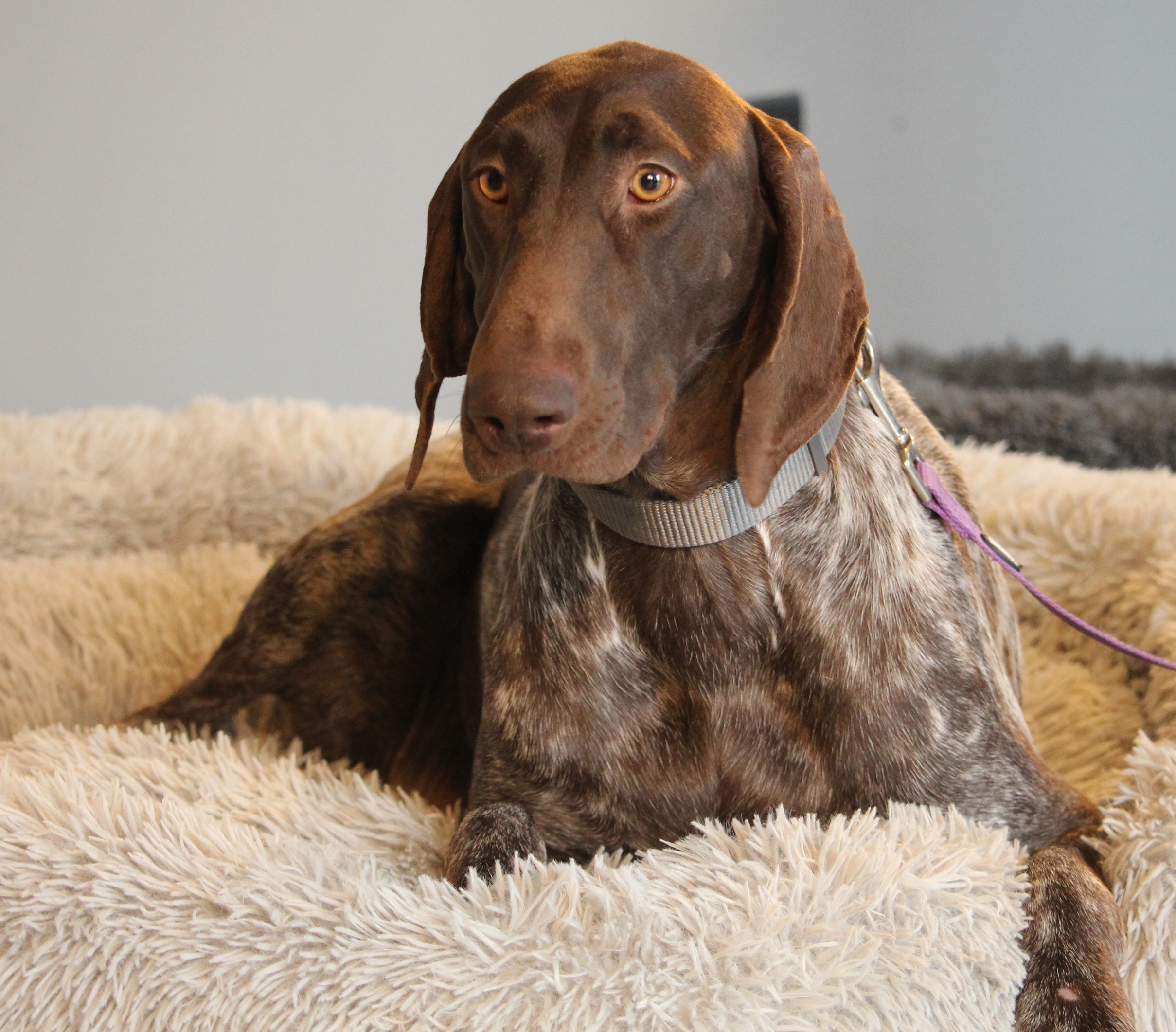 Lina ist eine sehr liebe und sanftmütige Deutsch Kurzhaar-Hündin, die es bisher nicht gut hatte. Sie ist knapp 3 Jahre alt und sehr schüchtern. Wir würden uns wünschen, dass Lina in einen Haushalt ziehen darf, wo bereits ein anderer Hund lebt. Ein souveräner Artgenosse kann ihr Sicherheit geben und ihr zeigen, wie schön ein Hundeleben sein kann. Diese tolle Hundedame möchte jetzt ein gutes Leben haben und ein Zuhause bekommen, wo man sie liebhat und natürlich auch mit ihr „arbeitet“. Jadghunde können mit vielen Dingen sinnvoll beschäftigt werden. Fährtensuchen, Mantrailing, Schnüffelspiele – wir beraten Sie auch gerne dazu. Lina ist lieb und freundlich, hat einen sehr guten Charakter.