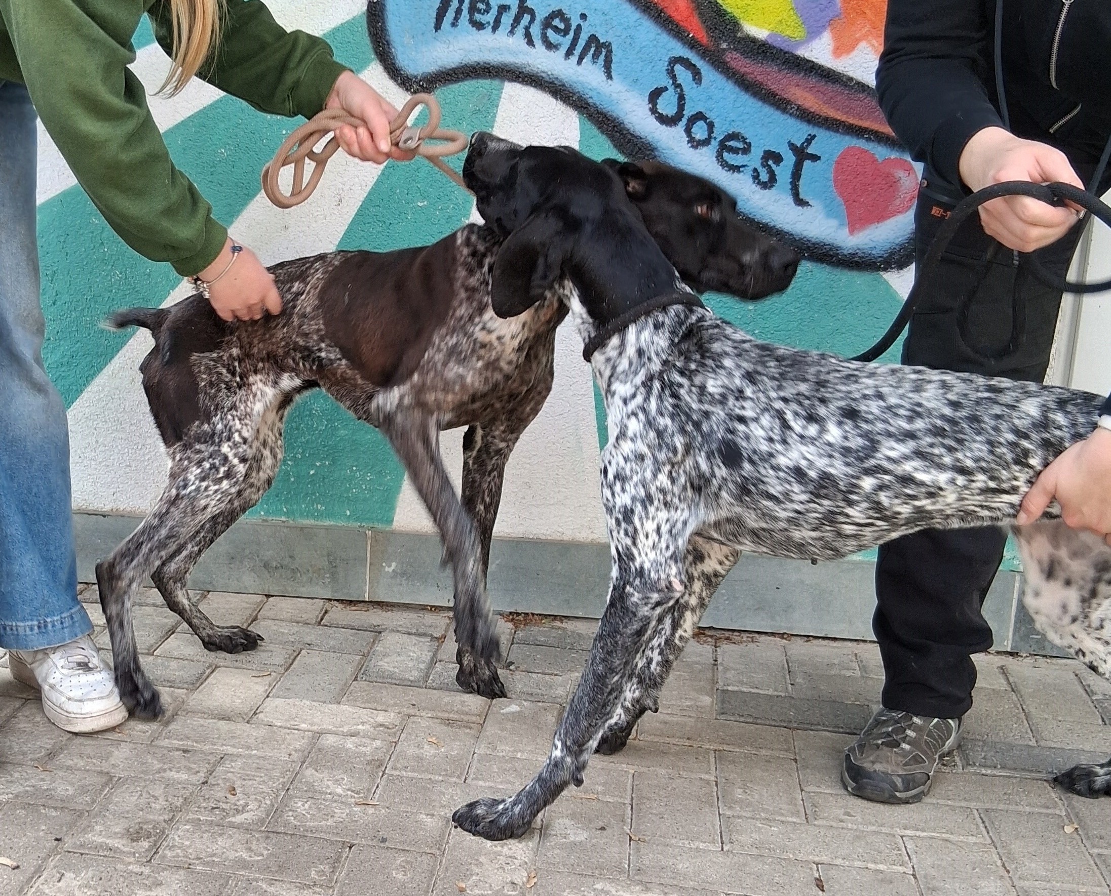 Luna und ihre Freundin Pepper haben bisher unter unsäglich schrecklichen Umständen gelebt. Als er sie nicht sofort verkaufen konnte ließ ein „Züchter“ die beiden jungen Hündinnen fast verhungern. Als sie entdeckt wurden waren sie bis zum Skelett abgemagert. Jetzt sind die beiden schon wieder gut aufgepäppelt worden und warten nun auf Menschen, die ihnen ein tolles Zuhause geben. Beide sind lieb und freundlich und eignen sich als Zweithund. Natürlich werden sie auch einzeln vermittelt. Wer einem lebhaften, sehr aktiven Hund gewachsen ist und auch weiß, das Jagdhunde ausgelastet werden müssen, sollte einmal einen Besuch wagen. Diese tollen Mädels können noch kaum etwas, sind aber charakterlich einfach toll und liebenswert.