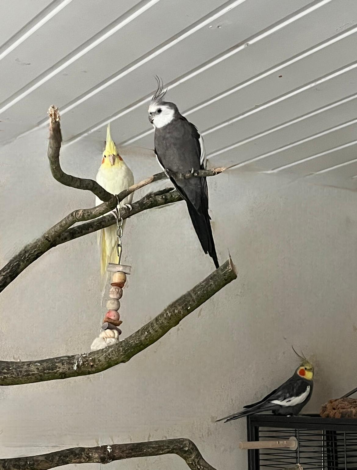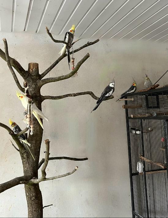 Kai hat sich super in den Schwarm eingelebt, er ist gesund und es geht ihm sehr gut. Er fliegt gerne und viel und ist immer am Zwitschern. Am liebsten ist er außerhalb des Käfigs unterwegs. Die Vögel haben ständigen Freiflug, da der Käfig immer offen ist.