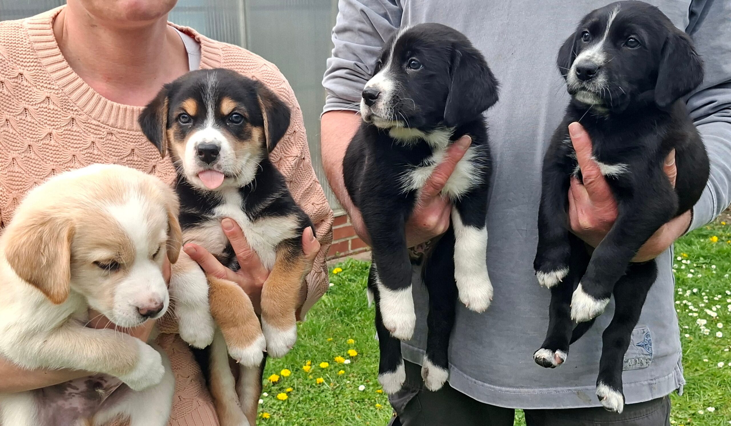 Sie sind im unserem Wohnzimmer geboren und wachsen hier im Haus und Garten mit 3 weiteren Hunden, 2 Freigänger-Katzen und täglichem Kontakt zu Menschen allen Alters liebevoll auf.